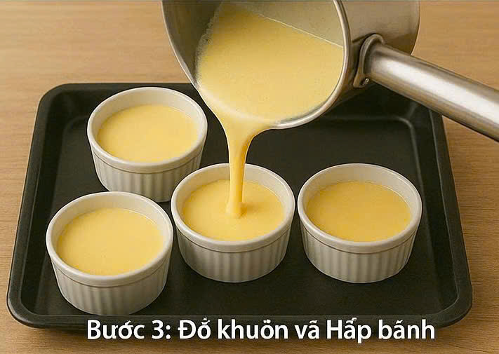 Bước 3: Đổ khuôn và Hấp bánh